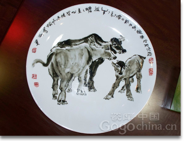 圖1: 易炳萱大師收藏藝術(shù)品手繪精品牛之魂藝術(shù)瓷盤(pán)