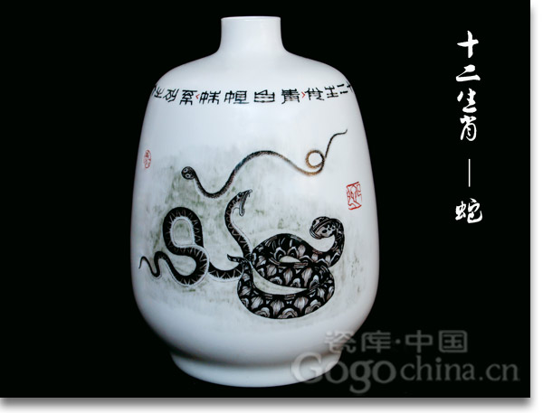 圖2:易炳萱大師手繪十二生肖精品瓷器花瓶之蛇