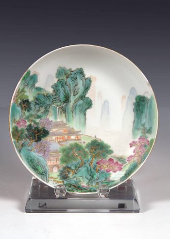 堂名款系指瓷器上書寫或刻劃私人住所或書房名稱,作為私家用瓷或收藏標(biāo)志的款識,內(nèi)容包括堂名、齋名、軒名、室名、書房名、樓名,閣名等。堂名款最早出現(xiàn)于宋代,明代后期形成風(fēng)尚,清代則更為流行,民國時期繼續(xù)出現(xiàn),但已不及清代豐富。民國堂名款具有以下幾個特征:首先是一些達(dá)官貴人用瓷多有堂名,如袁世凱的“居仁堂制”、徐世昌的“靜遠(yuǎn)堂制”、曹錕的“延慶樓制”等。這些瓷器均為當(dāng)時名家所造,史載,1923年軍閥曹錕曾出重金聘潘旬宇彩繪文具,但是否所有署“廷慶樓制”款識的皆為曹錕用瓷,或皆為潘氏所繪尚需考證。這部分堂名款均以印章形式出現(xiàn)在作品的底部。其次是文人雅士多有堂名,尤其是彩瓷名家, 如潘甸宇之“古歡”、王琦之“甸甸齋”、程意亭之“佩古齋”等。從嚴(yán)格意義上說,這類款識應(yīng)稱為藝人畫室款識為妥。這部分款識見有印章形式,書寫在器物的外底,亦有與書法款識相結(jié)合書在器物的外壁,而以后者居多。更為常見的是以書法形式的綜合性堂名款識,如張志湯的“星江張志湯寫于珠山亦陶齋西窗”。既有籍貫、姓名,也有齋名。由于這類款識已在人名款中加以介紹,故不再贅述。民國時期瓷器上署以堂名的器物較為多見,情況亦較為復(fù)雜,最為關(guān)鍵的是不能以款識中是否有“齋”、“軒”等字樣便定性為堂名款。因民國時期瓷器生產(chǎn)廠商號之名亦多見“軒”、“堂”、“齋”等字樣。貌似堂名,實則為商號,與主人的關(guān)系不大。如活躍于1920-1937年的彩瓷名家梁兌石,民國初年畢業(yè)于饒州窯業(yè)學(xué)堂,回南昌后開麗澤軒瓷店,請藝人按顧客要求繪制瓷器,由于忙于經(jīng)營,無暇自己彩繪。當(dāng)時的南昌名家劉希任作品多被麗澤軒購買,而鄒文侯、萬云巖均曾受聘于麗澤軒瓷店彩繪。
