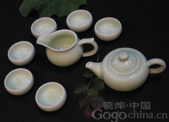 圖:龍泉粉青瓷八角白胎8頭功夫茶具套裝