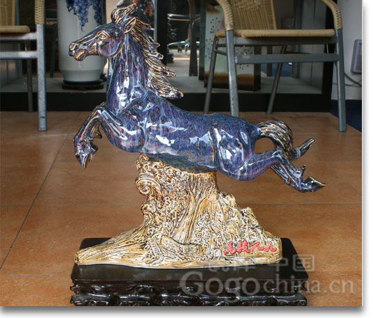圖:高檔鈞窯瓷器九九駿馬鈞瓷窯變瓷雕_陶瓷藝術大師作品