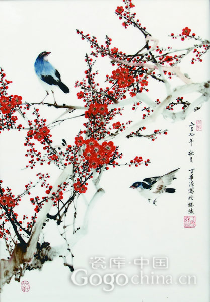 圖:丁華漢大師手繪釉下五彩瓷板畫梅花