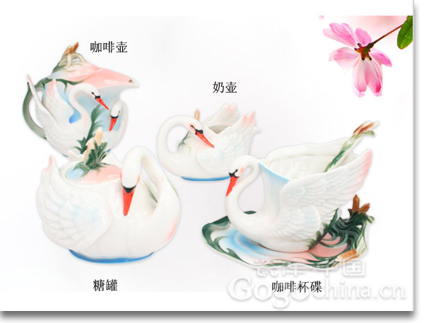 圖:商務(wù)禮品·16頭天鵝之戀骨瓷歐式咖啡具套裝