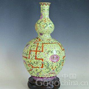 圖:清乾隆萬(wàn)壽連延粉(洋)彩葫蘆瓶