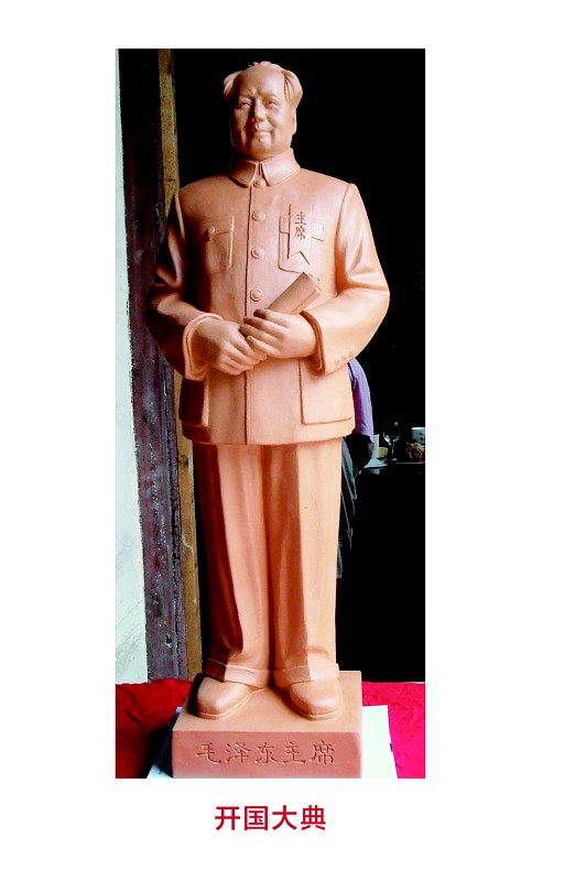 走進雍起林的工作室大門,陳列室里擺放著大大小小的全是毛主席像,大概有三十多尊。雍老自退休后就開了這個工作室,專門陶塑毛主席像。雍起林說:“特殊的生活經(jīng)歷和生活背景,讓我對毛主席有著很深的感情,而歷經(jīng)新舊兩個社會,更是讓我深愛著這片土地。我一直想著要創(chuàng)作一些作品來表達自己對祖國的情感,對毛主席的熱愛。而用陶藝塑造毛主席的形象是我能想到的,自己力所能及的,也是最有意義的方式。”