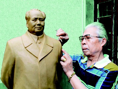 走進中國陶瓷藝術大師雍起林的院子,筆者看到兩個用簡易的石棉瓦和磚塊砌成的空間里,堆滿了正在晾干準備燒制的毛主席陶瓷像。雍起林指著院里高高的火爐告訴筆者:“這就是燒制瓷像的火爐。一般情況下,燒制一個陶像要經(jīng)過二十多個小時,我都要全程守候。” 鐘情雕塑毛主席像