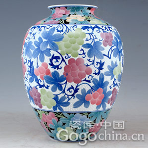 圖:袁述凡手繪精品釉下五彩纏枝葡萄太白尊