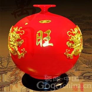 圖:家居飾品-中國(guó)紅漆線雕天地方圓家旺高檔花瓶