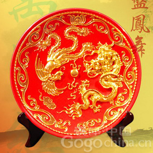 圖:家居飾品-紅瓷龍鳳瓷盤
