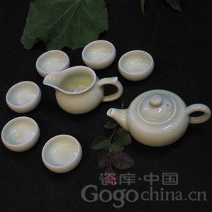 圖:龍泉青瓷玉晶米黃高檔茶具