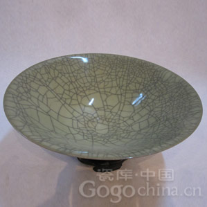 開片斗笠碗,小圈足,倒置過來形似斗笠,開片均勻,圈足規(guī)整,釉色瑩潤(rùn),是龍泉哥窯中的精品,彰顯端莊大氣。