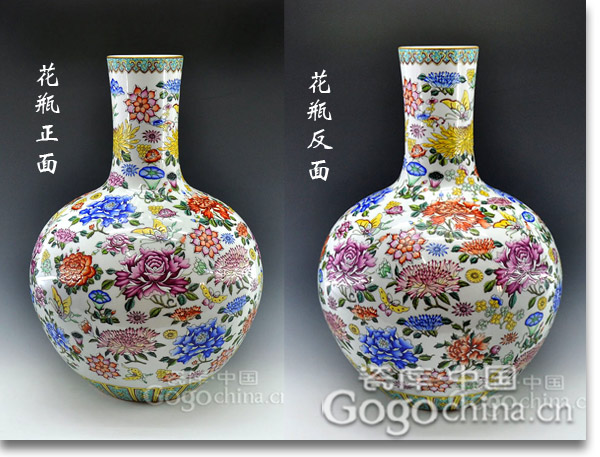圖:景德鎮(zhèn)精品粉彩萬花賞富貴天球瓶