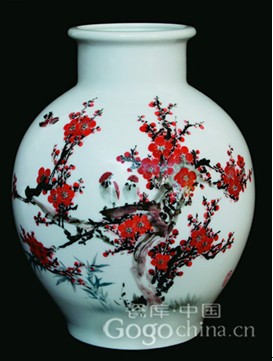 瓷庫(kù)中國(guó)精選的這款大師手繪花瓶以喜鵲、梅花為主要內(nèi)容,以諧音或表意突出“喜”字,加上梅花鮮艷的紅色,使花瓶的喜慶感更為濃厚。喜鵲落在梅花樹(shù)梢上,可稱之為“喜上眉梢”,而兩只喜鵲則代表著“雙喜臨門(mén)”。喜鵲因其“喜”,在素愛(ài)喜慶的我國(guó)是常見(jiàn)的紋飾:繪梧桐、喜鵲,稱“同喜”;繪一豹、一喜鵲,稱“報(bào)喜”;繪二喜鵲、一銅錢(qián),稱“喜在眼前”。