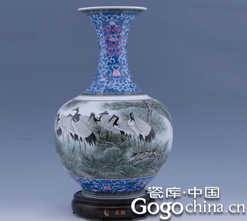 圖:高檔瓷器-松鶴延年陶瓷花瓶-大師作品