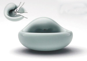 設(shè)計師將水龍頭和洗手盆設(shè)計為一體,造型采用了蝸牛的形態(tài),沒有任何的菱角,圓潤的造型讓這款產(chǎn)品更具親和力,這款洗手盆還可以根據(jù)水溫來改變自身的顏色,提醒用戶水的溫度,避免被燙傷。