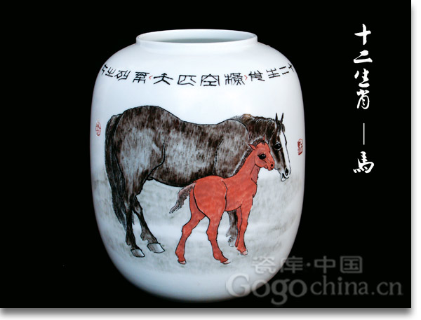 圖:易炳萱大師手繪十二生肖精品瓷器花瓶之馬