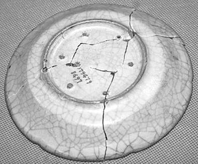 哥窯瓷器上布滿了黃黑相間的裂紋,即“金絲鐵線“,金絲指細碎的開片,呈黃色,鐵線指大塊的開片,呈黑色。金絲鐵線的形成是因為瓷器在燒造過程中,由于胎質和釉的膨脹系數(shù)不同,出窯后開裂。收藏家馬未都曾舉例說,自家的一件新仿制的哥窯瓷器,夜深人靜時能聽見嘣嘣作響的炸裂聲,這聲響一直能持續(xù)一兩年時間。釉片炸開后,粗的開片會漸成黑色,而細小的開片由于間隙過小,顏色進不去,時間長了,氣體進去后,就氧化成了金黃色。