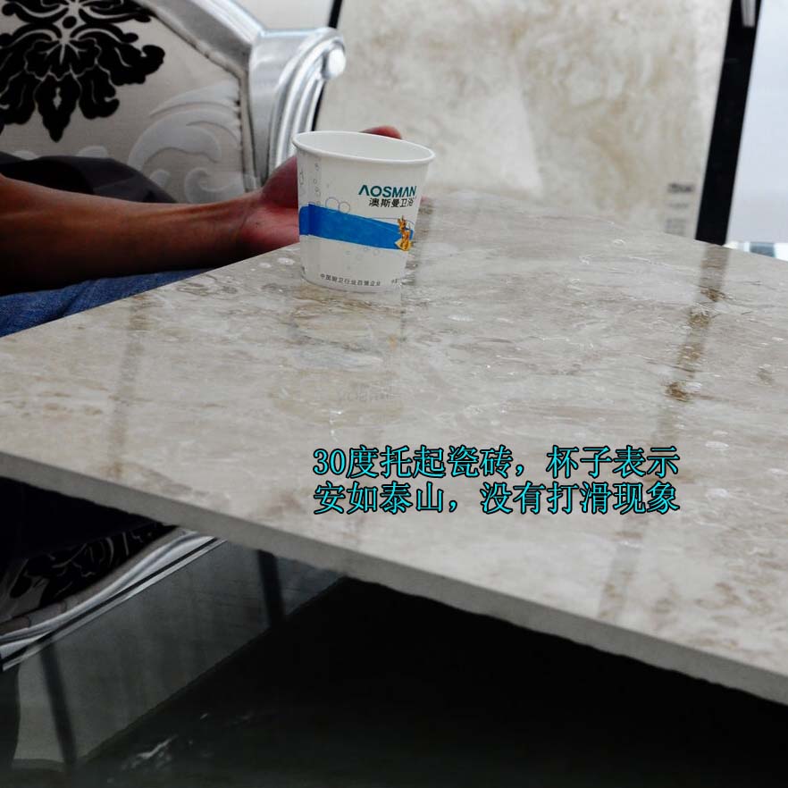 作為大部分瓷磚測評的必備測試,可以看出瓷磚吸水率大小的重要性。作為一塊地磚,如果吸水率高的話,必然會引起膨脹變形,大大影響家居的美觀和一體性。小陶把水倒在瓷磚上就在店里瞎逛,五分鐘后回到桌子旁,發(fā)現(xiàn)瓷磚幾乎沒有吸水。