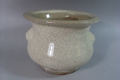 開片,為瓷器釉面的一種自然開裂現(xiàn)象。開裂的原因有兩種:一是成型時坯泥沿一定方向延伸,影響了分子的排列;二是坯、釉膨脹系數(shù)不同,焙燒后冷卻時釉層收縮率大。因此開裂原是瓷器燒制中的一個缺點;但人們掌握了開裂的規(guī)律而制出的開片釉(即裂紋釉),變成為瓷器的一種特殊裝飾了。宋代的汝、官、哥窯都有這種產(chǎn)品。開片又稱冰裂紋, 按顏色分有鱔血、金絲鐵線、淺黃魚子紋,按形狀分有網(wǎng)形紋、梅花紋、細(xì)碎紋等。