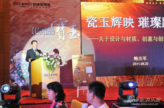 歐神諾陶瓷 “寶玉之夜 文化饕餮”暨IC微晶·寶玉新品巡回發(fā)布于2011年8月22 日在泉城濟南盛大開幕,來自濟南的兩百名設(shè)計師與多名貴賓共同見證了歐神諾陶瓷為寶玉新品奉上的奢華藝術(shù)盛宴。佛山歐神諾陶瓷股份有限公司董事長鮑杰軍先生、馬來西亞國師虛一子大師、銘石集團(tuán)董事長郭玉琛先生、歐神諾濟南營銷中心總經(jīng)理王鵬飛先生等隆重出席本次盛會。