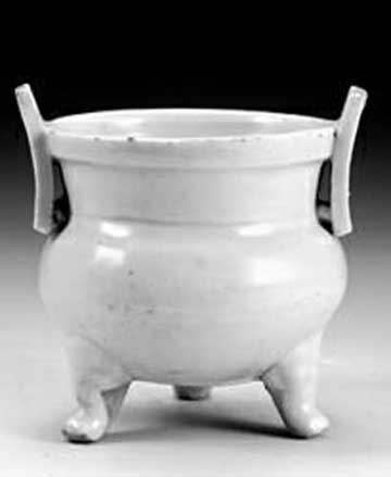 已故中國(guó)古陶瓷學(xué)會(huì)會(huì)長(zhǎng)、我的老師汪慶正先生,曾來寒舍聊敘,我請(qǐng)他鑒定此香爐,汪老拿下眼鏡,拿著香爐仔細(xì)觀察,一口說是影青瓷。他說:人們習(xí)慣叫影青瓷為“青白瓷”,聞名的14世紀(jì)的卵白釉(樞府)是由青白瓷衍生出來的,雖然元代青白瓷在釉色的晶瑩和胎體的薄潤(rùn)等方面遜色于宋代,但它成為元青花的母胎,功不可沒。汪慶正認(rèn)為:樞府釉瓷胎體一般比較厚重,色白微青,呈失透狀,頗似鴨蛋殼色,故稱之為“卵白釉”。傳世品以元代最高軍事機(jī)構(gòu)“樞密院”定燒的卵白釉瓷為多見,樞密院定燒瓷在盤、碗器的紋飾中印有“樞”、“府”二字,故又稱之為“樞府”釉。