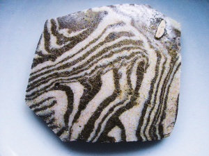日前,有一位藏友帶來幾片“絞胎”瓷片,絞胎罩、透明釉,從瓷片可以看出,胎體是由高嶺土胎泥和摻有一定高氧化鐵礦物的胎泥相絞,然后掛透明釉燒制而成。由于褐、白兩色泥料相絞、擠壓、拉伸而形成夾花,產生出多種紋理,如木理紋、羽毛紋、團花紋、流水行云紋等,極為美麗。然而,據悉,絞胎、絞釉工藝在宋靖康之后就已失傳,到了清代“嘉道”年間,瓷器圖案上出現(xiàn)的均是仿木葉、大理石紋。因此,提醒藏友“絞胎”瓷整器不要輕易買入。
