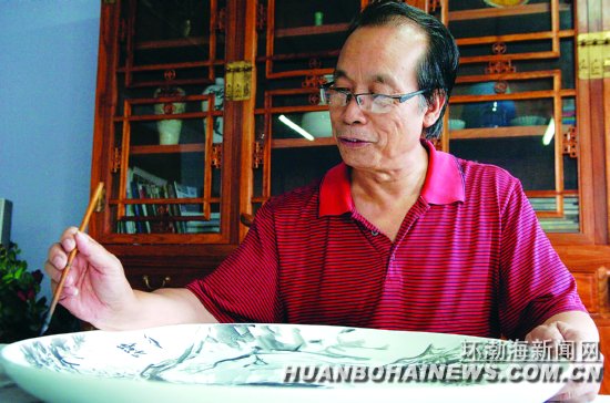 以獨(dú)創(chuàng)深刻瓷工藝、現(xiàn)代白瓷青花及釉下多彩工藝聞名的范有祥,從事陶瓷藝術(shù)創(chuàng)作已40余年。他將中國寫意畫及書法篆刻創(chuàng)作心得融于陶瓷藝術(shù)創(chuàng)作之中,講究自然與人文裝飾及寫意精神。他是高級工藝美術(shù)師,去年榮獲中國陶瓷藝術(shù)大師稱號。圖為范有祥正在為即將召開的陶博會創(chuàng)作新作品。