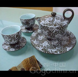 圖:商務(wù)禮品·臺灣鹽水燒創(chuàng)意造型菊花紋茶具