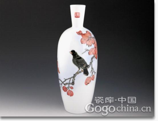 圖:張驥大師手繪精品·鳥啼紅葉更宜人高檔瓷器釉下五彩花瓶