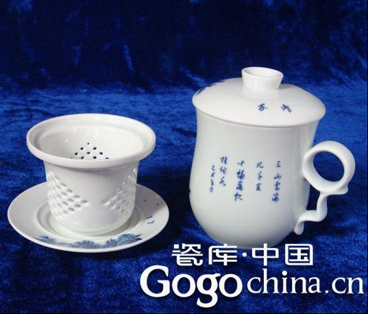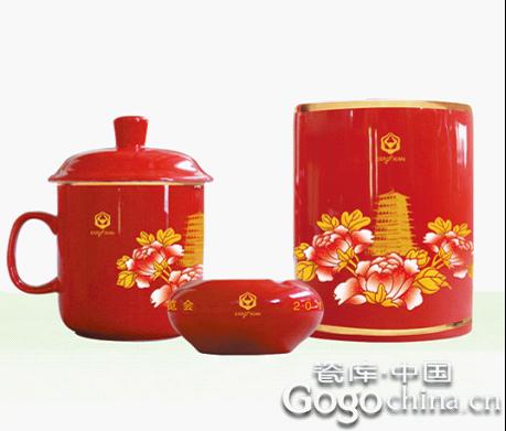 圖:中國(guó)紅瓷長(zhǎng)安開(kāi)花陶瓷茶杯辦公3件套