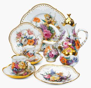 德國麥森高檔瓷器的每一位彩繪、造型師都必須經過數(shù)十年的藝術與技術培養(yǎng),能在每件創(chuàng)作上融入不同時期的藝術風格,展現(xiàn)近300年來的歐洲藝術史。舉例來說,名為“一千零一夜”的麥森瓷器作品,以豐富的人物做為創(chuàng)作主題,巧妙地刻畫出人物表情、眼神傳遞,以及情色的元素,整套瓷器價值100多萬元,值得玩家收藏;而另一套價值人民幣5萬多的“勿忘我黃玫瑰”也頗受歡迎,其中包括咖啡壺一只、咖啡杯碟六只、奶罐一只、糖罐一只、點心盤六只。
