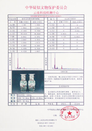 近日,市民金先生將兩年前在北京某拍賣會上拍到的一對粉彩撣瓶,送中華疑似文物甄別保護委員會云南科技檢測中心鑒定。自從北京回昆后,一些專家認為其撣瓶是光緒瓷,一些專家認為是民國仿。奇怪的是,還經(jīng)常有陌生電話打來,提出想要低價收購。感覺事有蹊蹺的金先生,希望借助科學鑒定明了真相。