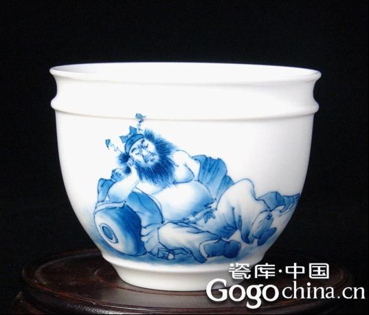 圖:景德鎮(zhèn)青花瓷重工人物鐘馗醉酒陶瓷茶杯