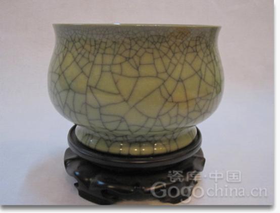 圖:龍泉青瓷手拉坯米黃釉開(kāi)片缽