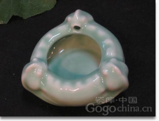圖:龍泉青瓷梅子青金魚煙灰缸