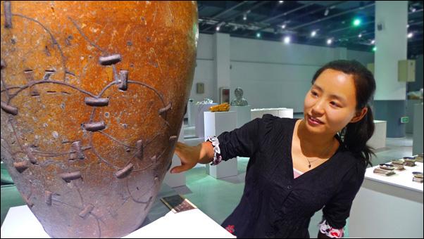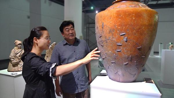《和合》以“鋦”的手藝為主題,載體為中國傳統(tǒng)儲酒器皿。作者顧群業(yè)介紹說,無論是儲酒的器皿,還是“鋦”的工藝,都源于民間世俗的生活方式。鋦藝至少已有一千多年的歷史。俗話說“沒有金剛鉆別攬瓷器活”,這個(gè)“瓷器活”指的就是鋦藝。老一輩或許還有“鋦盆、鋦碗、鋦大缸”的記憶,但隨著時(shí)代經(jīng)濟(jì)發(fā)展,鋦藝已經(jīng)逐漸淡出了人們的生活。顧群業(yè)希望以此作品體現(xiàn)傳統(tǒng)文化的傳承、人文精神的物化、自然物象的重構(gòu)以及生態(tài)意識的警醒。