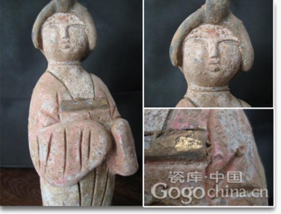 圖:洛陽工藝品唐三彩V領(lǐng)高腰襦裙彩繪女俑