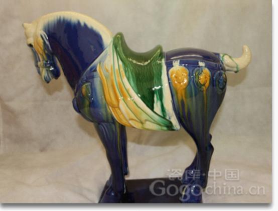 圖:洛陽(yáng)高檔禮品唐三彩工藝品藍(lán)披鬃大馬