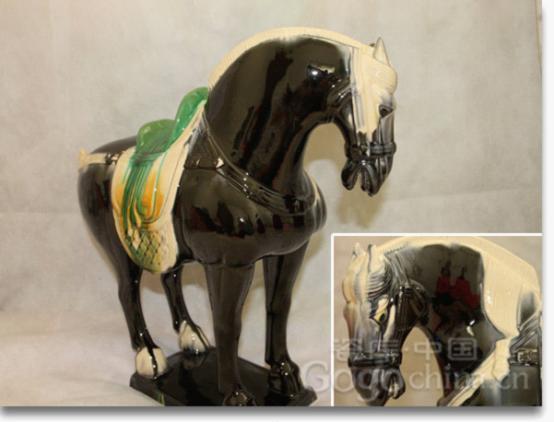 圖:洛陽禮品高級黑色國禮唐三彩馬