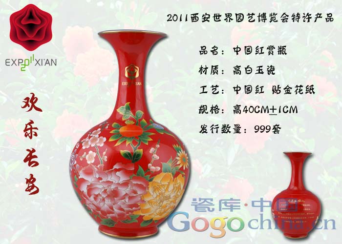 圖:世界園博會(huì)禮品歡樂長安陶瓷花瓶-全球限量999件