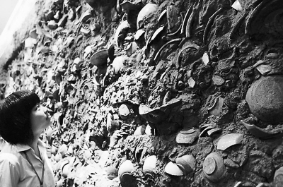 最后一個出了展廳,望著序幕廳那面鑲滿瓷片的土墻,竟有戀戀不舍之感!作為展覽提綱挈領(lǐng)的一筆,這面土墻的設(shè)計堪稱高妙——它的存在,分明時刻都在提醒人們:你已經(jīng)訪到邢瓷的源頭了!