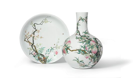 “玫茵堂珍藏”呈現(xiàn)達(dá)40件明、清兩朝珍品,最受人矚目的為來自15世紀(jì)初的大型青花果紋飾瓶及18世紀(jì)的粉彩桃紋件天球瓶。此外,此次拍賣還匯集了兩個(gè)香港私人珍藏——懷海堂珍藏及一批銅胎畫琺瑯器收藏。