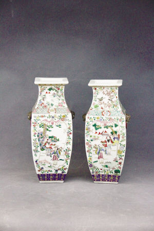 近日,市民包先生到中華疑似文物甄別保護(hù)委員會(huì)云南科技檢測(cè)中心,他攜帶一對(duì)“粉彩八仙人物紋雙耳方瓶”,據(jù)其介紹為祖屋翻新時(shí)所獲祖?zhèn)魑铩S捎诘撞靠钭R(shí)為罕見花樣款,給鑒別增加了難度,故包先生希望求助科學(xué)手段。