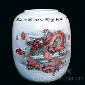 易炳萱大師手繪精品釉下五彩十二生肖瓷器花瓶之龍,整套十二生肖釉下五彩花瓶,是易炳萱經(jīng)過多年的構(gòu)思,于2006年精心繪畫,精工制作完成,也是國內(nèi)唯一的一套,為藏品中的難得珍品。整套作品為12個,全球僅有3整套;其中一套在2010年初,參加了長沙舉辦的“永不落幕的陶瓷文化藝術(shù)精品展”,力挫群雄,以 240萬元成交,成為全場最名貴的瓷器。