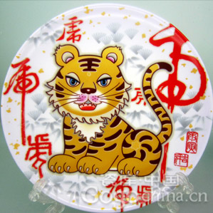 “王者風(fēng)范”虎盤由景德鎮(zhèn)陶瓷大家“賴德全,陳敏,邱含,李磊穎”設(shè)計(jì),中國工藝美術(shù)大師“秦錫麟,熊剛?cè)?rdquo;監(jiān)制。虎盤以虎踞的形態(tài)出現(xiàn),小老虎以炯炯的眼神正視前方,尾巴高高翹起,顯示出將門虎子王者風(fēng)范的雄健,威猛之勢。