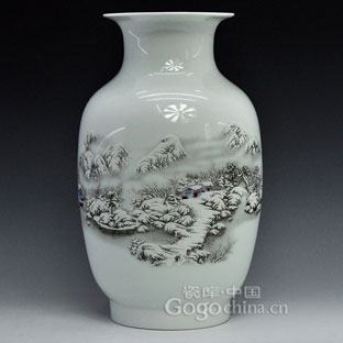 圖:雪景溪山訪友高檔藝術(shù)花瓶