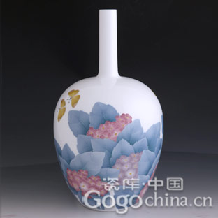 圖:張玲大師手繪釉下五彩瓶·高檔瓷器蝴蝶自在花卉瓶