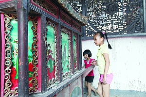 坐在天井中,黃昏的陽(yáng)光從瓦楞間散落下來(lái),落在那些充滿靈氣的門窗、石雕上,一下子讓博物館的百年老宅煥發(fā)出光彩來(lái)。解放后,政府接管了楊益泰舊第,曾用做政府部門公安局等辦公場(chǎng)所,所以保護(hù)完好。近些年,政府開始對(duì)老宅進(jìn)行維修,3年前進(jìn)行了主體工程維修,今年上半年進(jìn)行了屋面的維修。