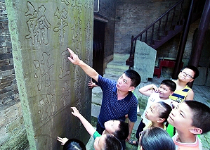 院內(nèi)碑文吸引小書法愛(ài)好者
