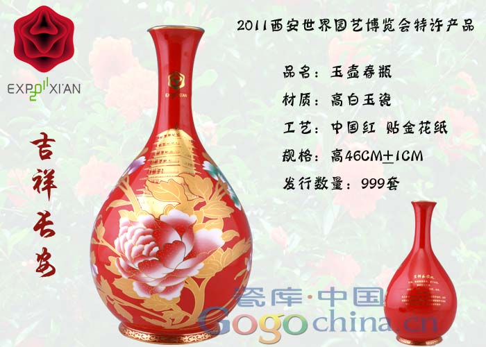 圖:世園會禮品中國紅瓷吉祥長安陶瓷花瓶